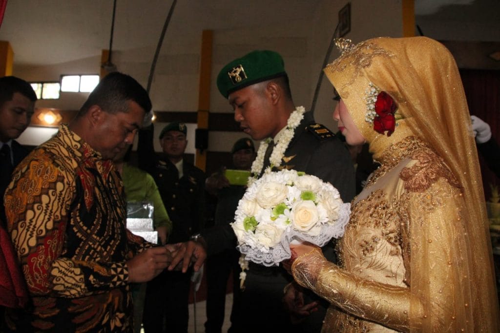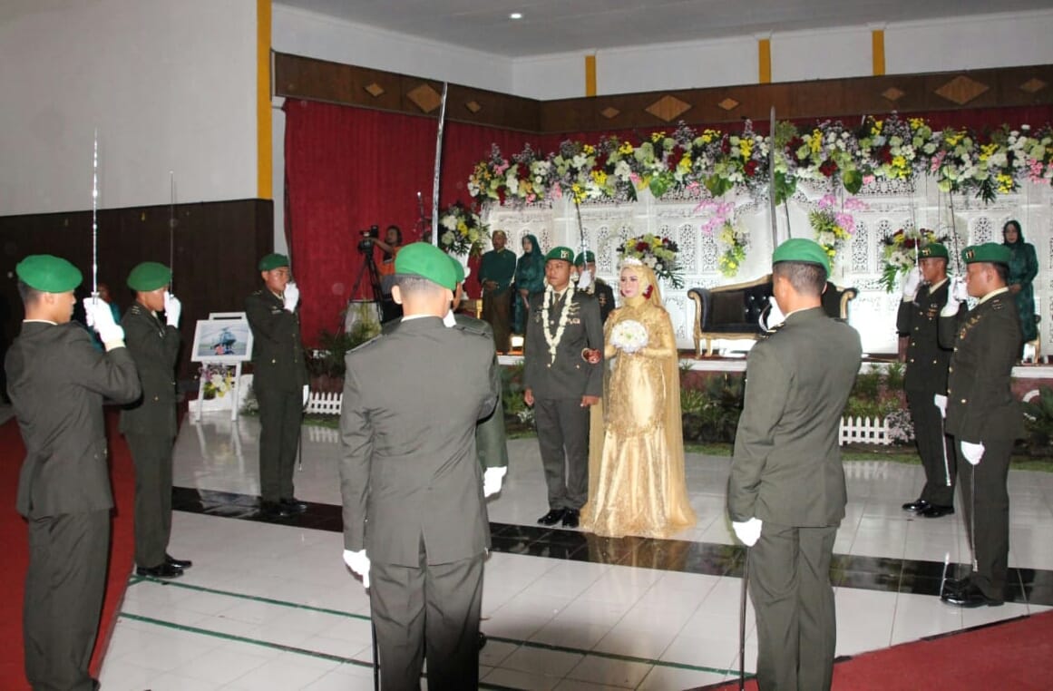 Pernikahan yang berlangsung p dengan tradisi pedang pora dipimpin oleh Lettu CPN Erika yang pada kesempatan itu pemasangan cicin pernikahaan kepada mempelai Putra oleh Dandim 0818 Malang Batu Letkol Inf Ferry Muzawwad S.IP.