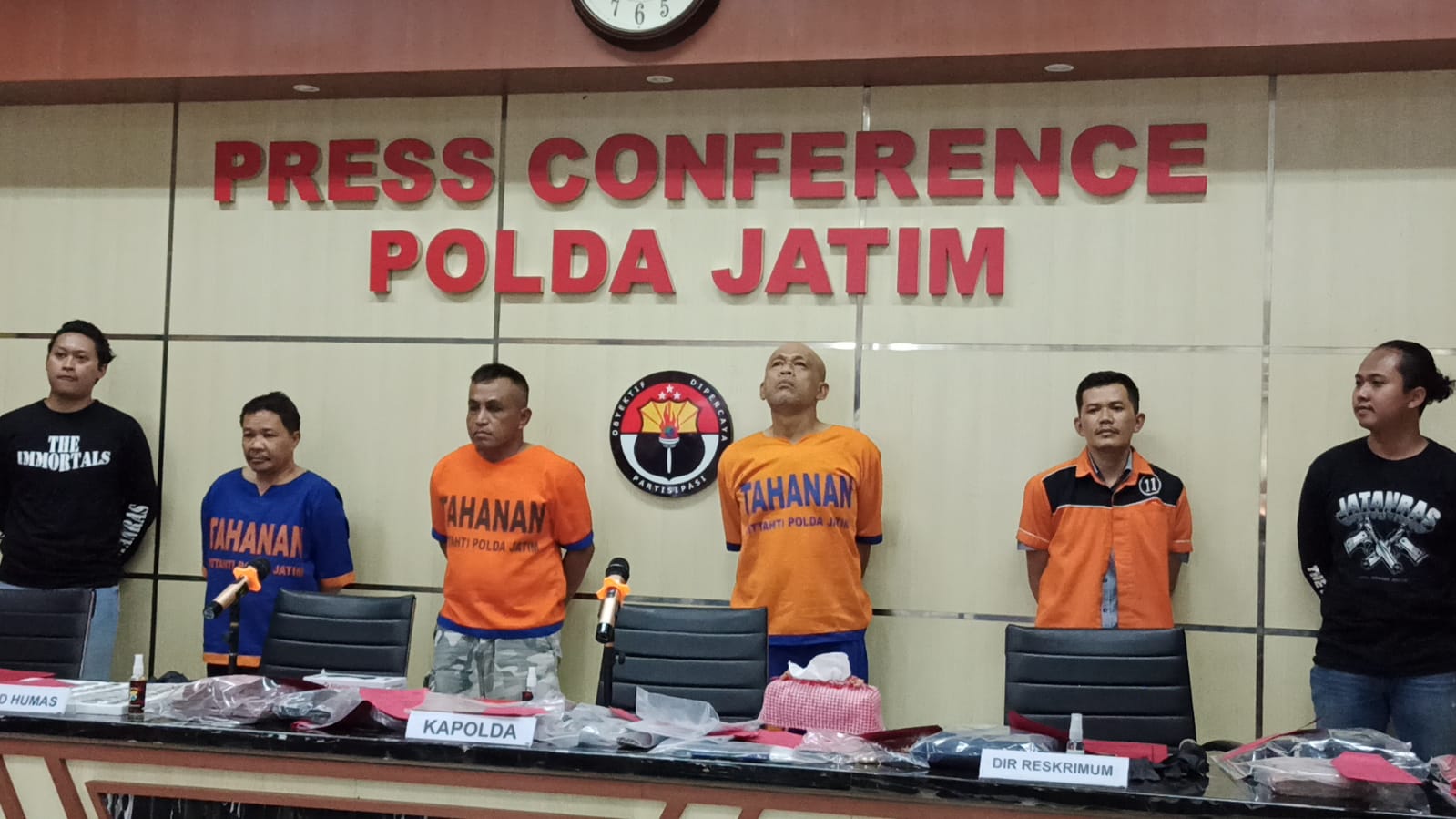 Sementara itu Dirreskrimum Polda Jatim, Kombes Pol Totok Suhariyanto, pengungkapan ini berjalan kurang lebih 24 hari, karena lima pelaku yang telah kita identifikasi itu cukup lihai melarikan diri. Pertama, itu dilakukan penangkapan terhadap NT hari Jumat di salah satu penginapan di Bandung.