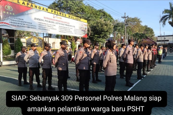 MEMOX.CO.ID – Sebanyak 309 personel Polres Malang disiagakan untuk mengamankan pengesahan dan pelantikan warga baru Persaudaraan Setia Hati Terate (PSHT) Cabang Kabupaten Malang, Sabtu (13/7/2024).