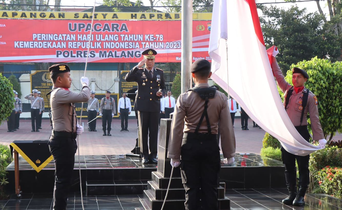 Polres Malang Upacara Peringati Hari Kemerdekaan RI ke-78 Tahun 2023