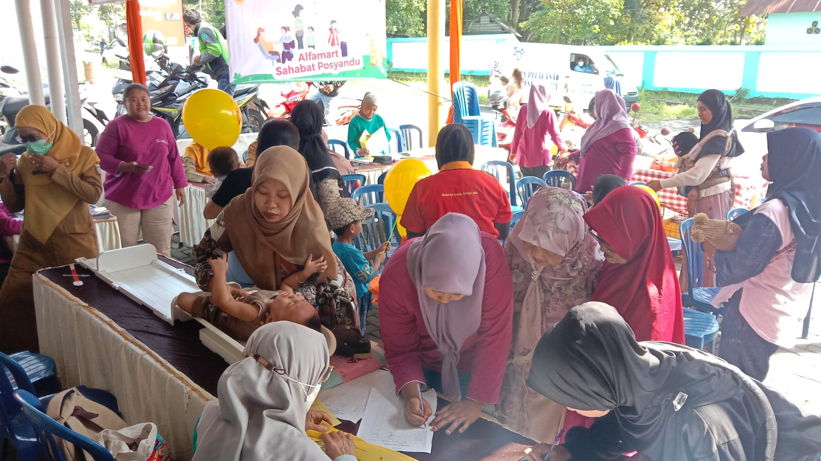 Bertempat di halaman parkir Alfamart Imam Bonjol, dengan cekatan petugas Posyandu Desa Ardimulyo secara langsung memberikan pemeriksaan kesehatan secara gratis kepada 80 ibu dan balita rangakaian kegiatan Alfamart Sahabat Posyandu, dengan mengandeng Enervon-C untuk kali pertama ini.