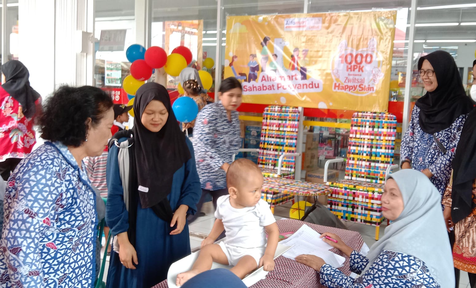 Salah satunya yang dilaksanakan di toko Alfamart Satria Barat Kelurahan Balearjosari Kecamatan Blimbing Kota Malang dengan menggandeng Posyandu Melati dan Posyandu Gladiol dengan jumlah peserta 104 yang terdiri dari Ibu dan anak.