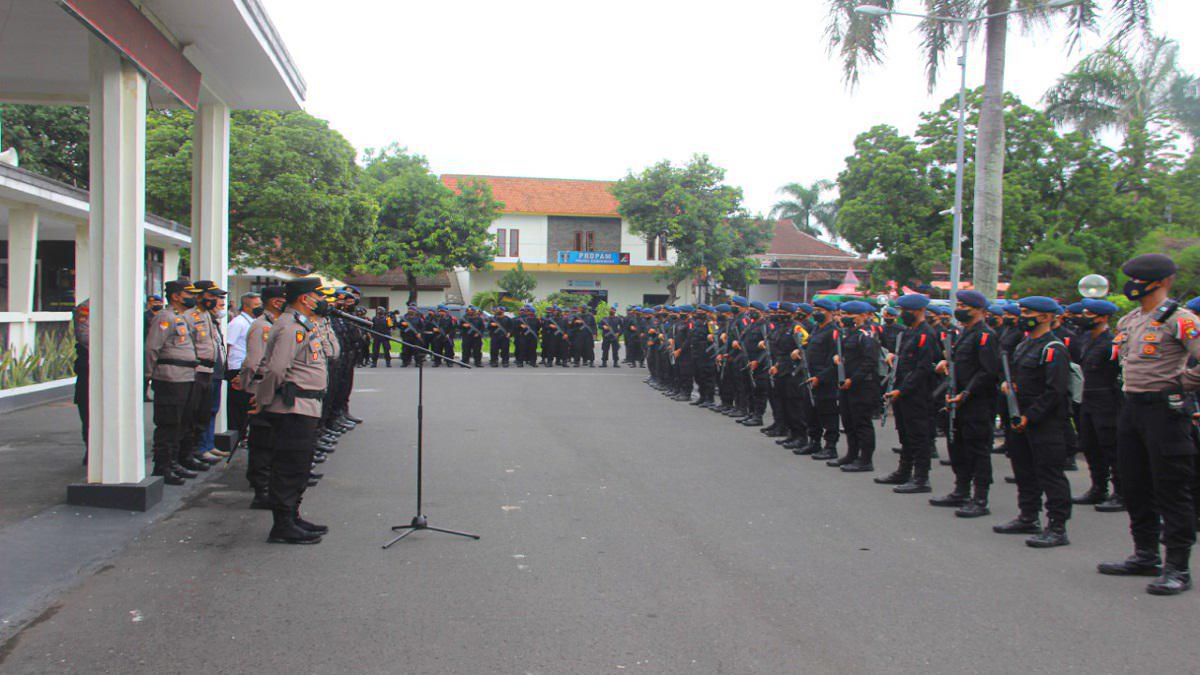 Apel dilaksanakan dua kali. Mengingat jumlah total personil Polri yang diperbantukan mencapai lebih dari 1.680. Sehingga, untuk menghindari kerumunan, apel dibagi dalam dua sesi apel. (sam/mzm)