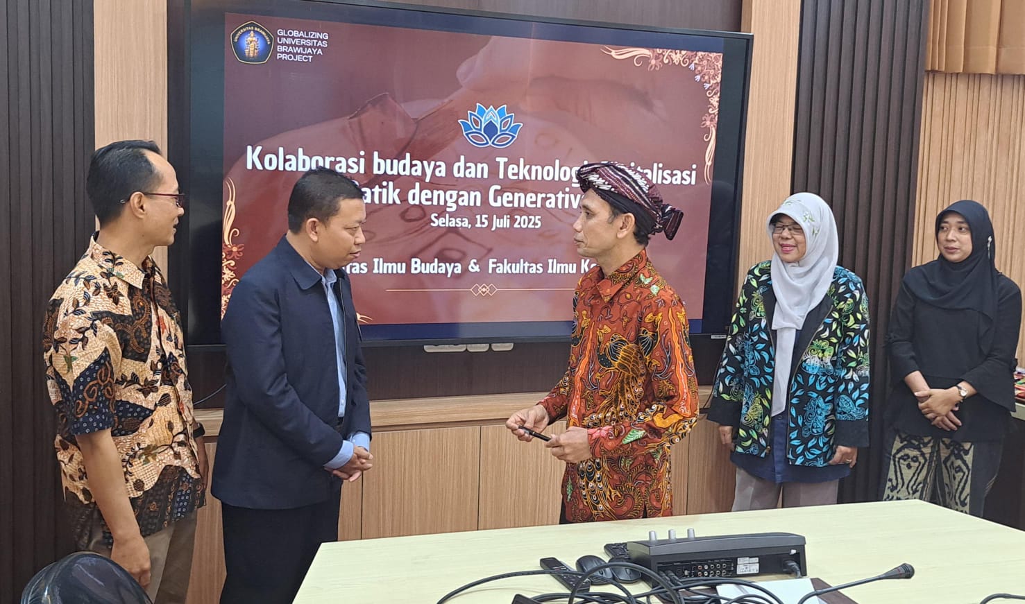 Kegiatan ini dikemas dalam acara Focus Group Discussion (FGD) bertajuk “Kolaborasi Budaya dan Teknologi Digital: Batik dengan Generative AI”, yang berlangsung di Ruang Rapat Gedung B Lantai 1 FIB UB, Selasa pagi.
