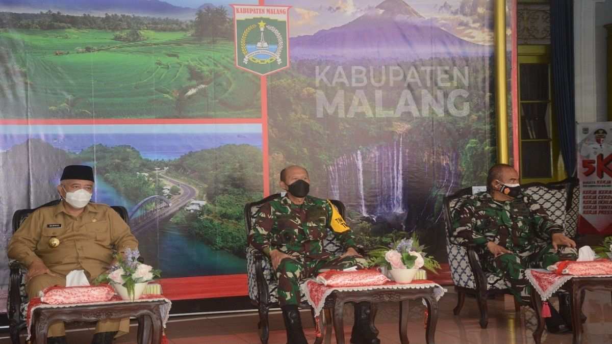 Saat tiba di pendopo Kabupaten Malang disambut langsung Bupati Malang Drs. H.M. Sanusi, M.M dan Dansatgas TMMD ke-112 Kodim 0818 Malang-Batu Letkol Inf Yusub serta instansi terkait lainnya.
