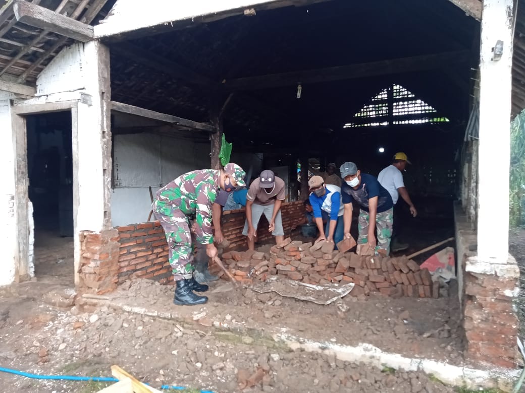 Babinsa Koramil 0818/01 Pujon dan Warga Gotong Royong Bongkar Rutilahu Milik Warga Binaanya