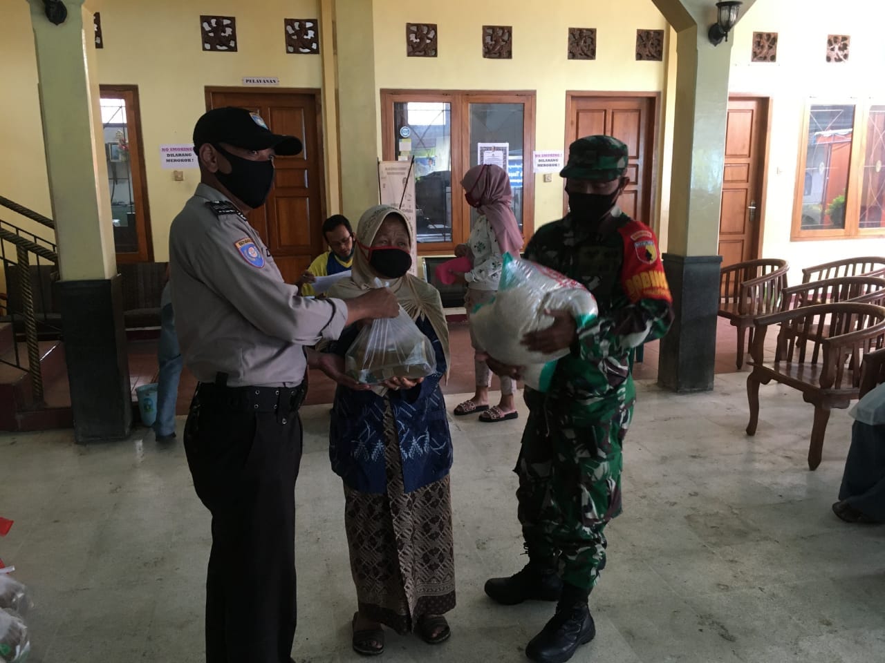 Babinsa Koramil 0818/06 Sumberpucung dan Bhabinkamtibmas Bagikan Sembako ke Warga Terdampak Covid-19