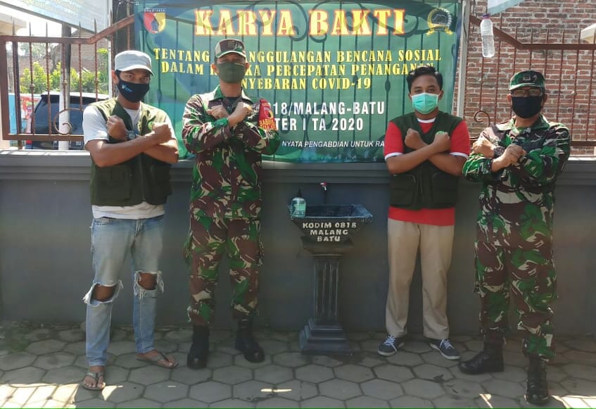 Selain melaksanakan sosialisasi non-fisik dalam pencegahan Covid-19, program fisik juga dilakukan oleh Koramil 0818/08 Wagir yaitu pembuatan tempat cuci tangan berupa wastafel.