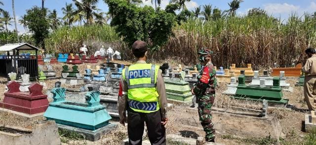 Sersan Satu Sukirman Budiono Babinsa Koramil 13/Kalipare disela-sela kegiatan menyampaikan demi keamanan dan keselamatan team Satgas maka pemakaman dilaksanakan secara protokol kesehatan.