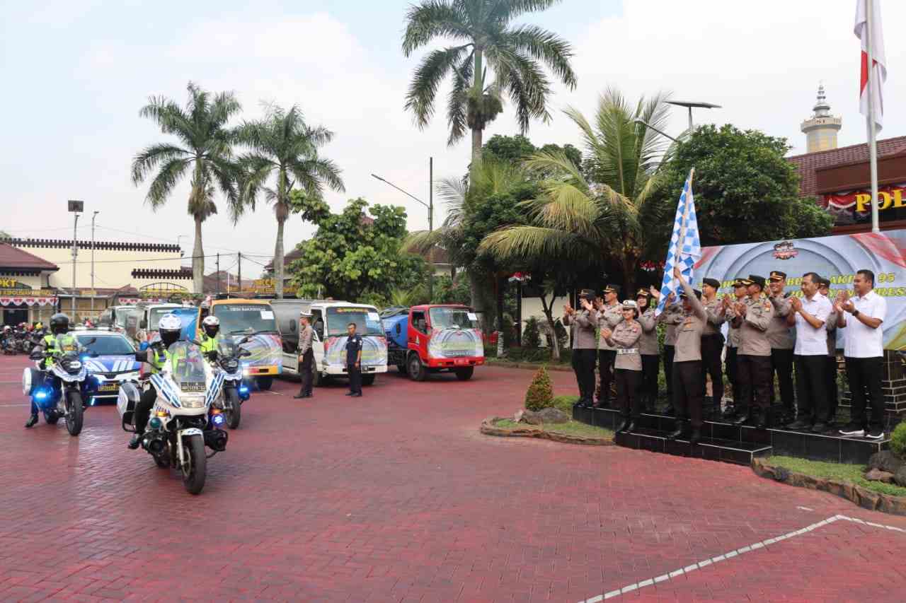 KAWAL: Kapolres Malang AKBP Kholis saat melepas mobil tangki air bersih dengan pengawalan anggota Satlantas. (foto:ist)