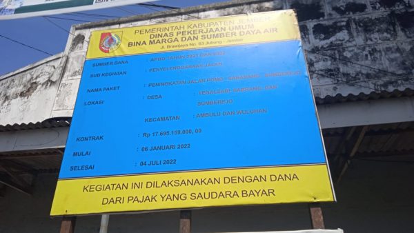 Jember, Memo X – Proyek peningkatan jalan Pomo-Sabrang-Sumberejo Kecamatan Ambulu berkualitas buruk. Diduga proyek yang menggunakan dana APBD Jember 2021 dengan skema multiyears atau tahun jamak dikerjakan asal-asalan.