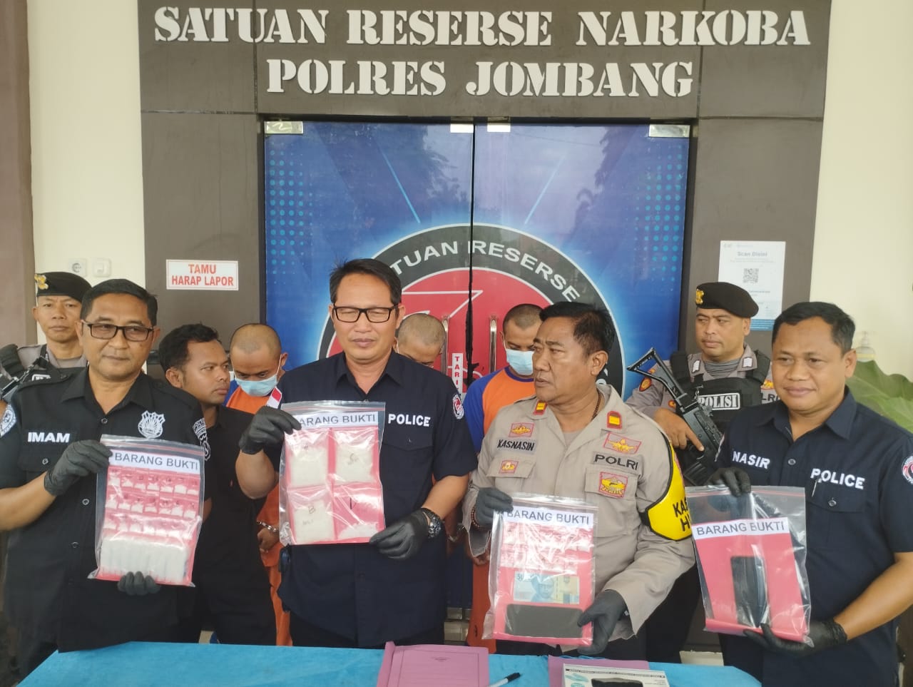 SatReskoba Polres Jombang berhasil menyita barang bukti (BB) dari pelaku WP berupa 30 paket sabu dengan berat 358,66 gram, 1 buah Timbangan Digital, 1 Plastik Klip berisi 9 Pak Plastik Klip kecil, 2 Pak Plastik Klip besar, 1 buah alat segel plastik.