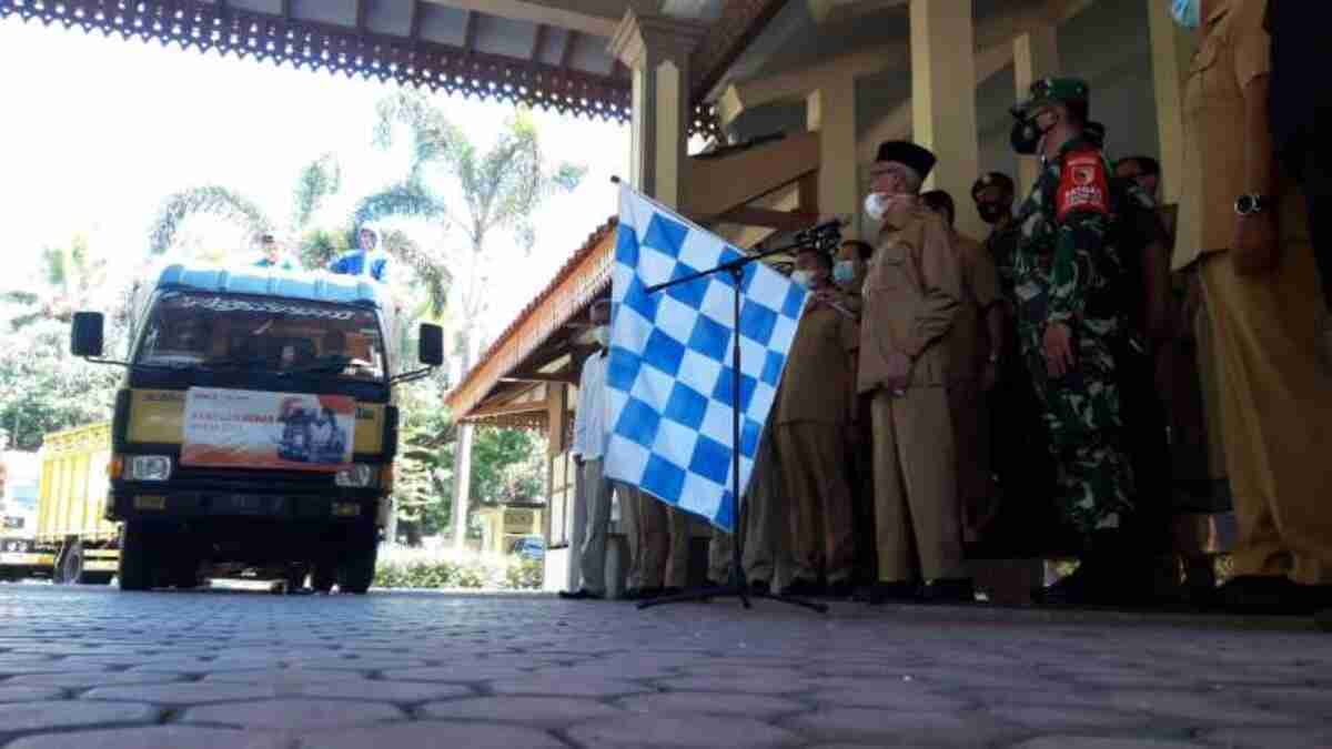 Bondowoso, Memox.co.id – Bupati Drs. KH. Salwa Arifin melepas beras bantuan dari Pemerintah Pusat bagi Keluarga Penerima Manfaat (KPM) Program Keluarga Harapan (PKH) dan Bantuan Sosial Tunai (BST), Senin (26/7/2021) di Pendopo kabupaten.
