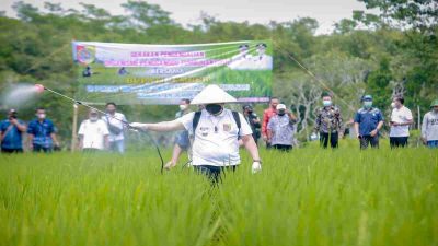 Bupati juga mendorong petani menggunakan unsur-unsur hayati agar tidak merusak lingkungan. “Dan hari ini kami (Pemkab), tepatnya ada di Desa Lengkong, Saat ini kita sedang meramu bagian kreatifitas dan inovasi temen – temen kita para kelompok tani untuk membasmi hama,” seru Bupati Hendy.