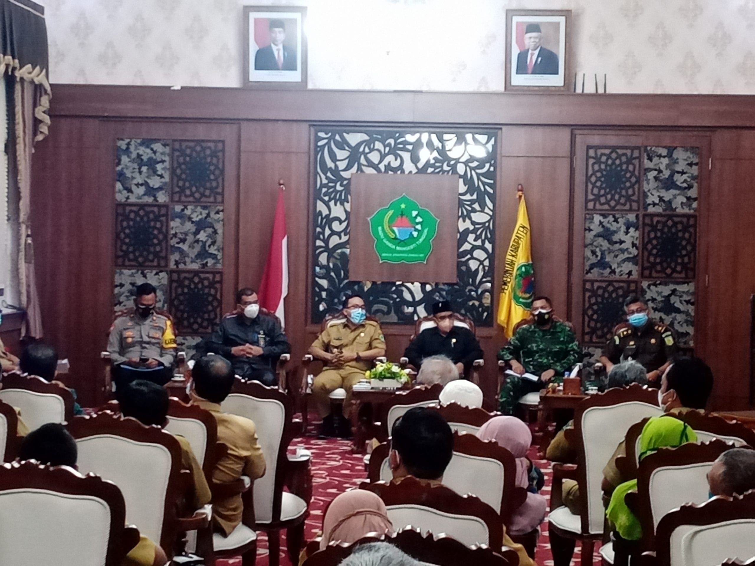 Pamekasan, Memox.co.id – Forkopimda (Forum Koordinasi Pimpinan Daerah) Pamekasan menggelar rapat koordinasi vaksinasi Covid-19 di ruang Pringgitan Pendopo Agung Ronggosukowati Pamekasan, Senin (25/01). Dalam acara yang dihadiri Kadinkes Pamekasan, dr. Achmad Marzuki tersebut membahas beberapa hal, seperti kebutuhan dan distribusi vaksin, syarat penerima vaksin, tempat dan waktu pelaksanaan dan alur pelayanan.