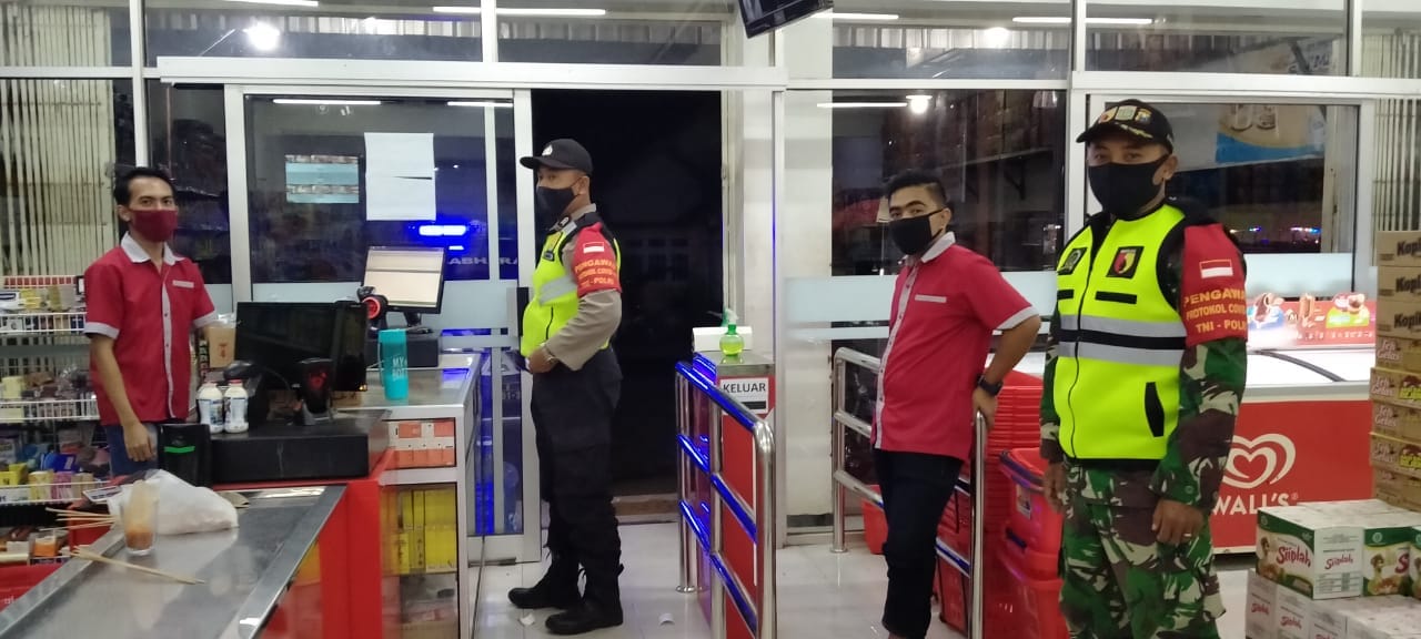 Cegah Covid-19, Koramil 0818/20 Tajinan dan Bhabinkamtibmas Gelar Patroli New Normal di Sejumlah Pertokoan