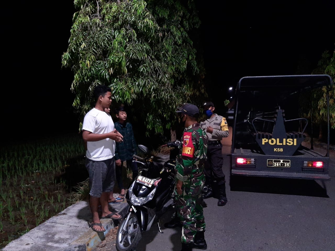 Personel Koramil dan Polsek berikan himbauan ke warga untuk mengurangi aktifitas di malam hari.