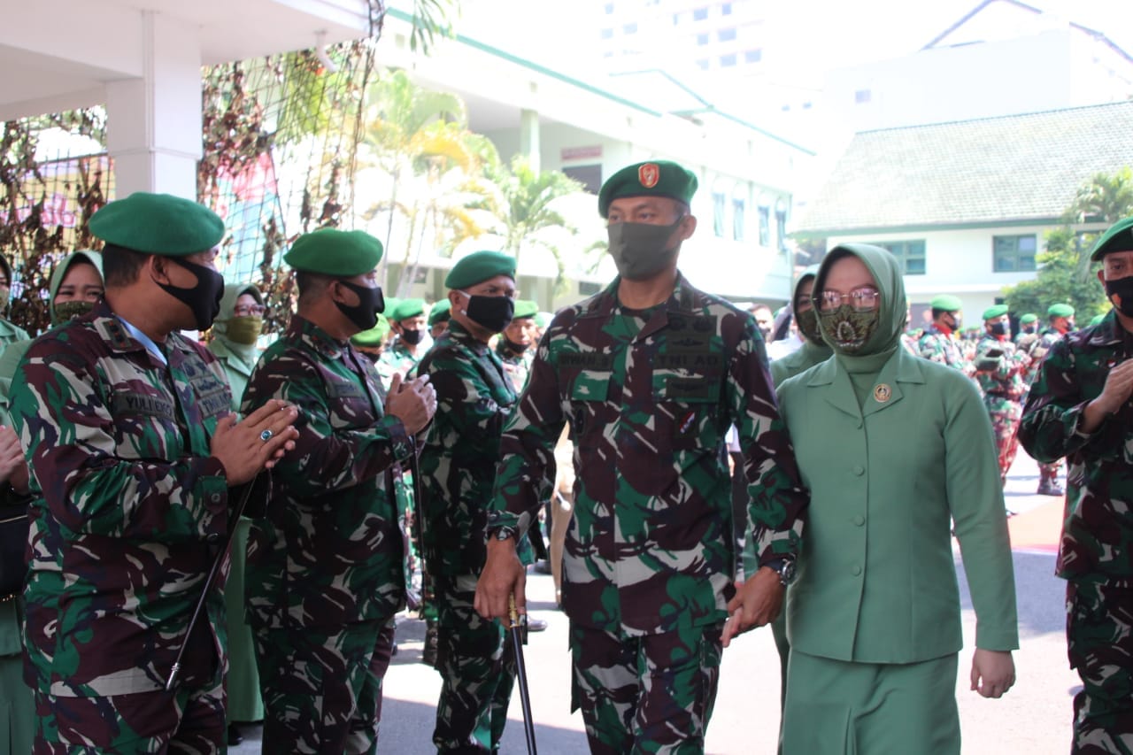 Kedatangan Danrem 083/Bdj Kol Inf Irwan Subekti bersama sang istri Ny Irwan Fatmawati di Mokorem 083/Bdj disambut dengan tarian tradisional Jawa Timur dan prosesi pedangpora dilapangan upacara Makorem 083/Bdj.