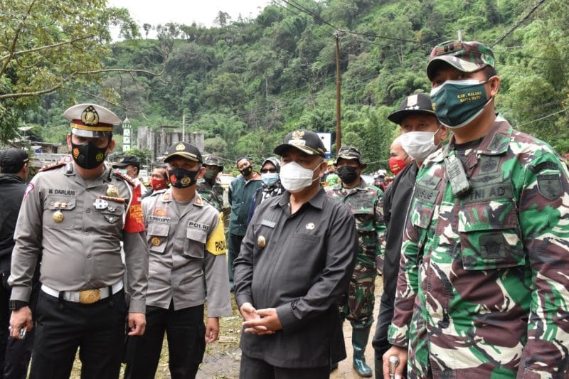 Malang, Memox.co.id – Komandan Kodim 0818 Kab Malang-Batu Letkol Inf Yusub Dody Sandra, S.I.P beserta Bupati Malang H. Sanusi mengecek lokasi yang terkena longsoran tanah di wilayah Kecamatan Ngantang Kabupaten Malang, Kamis (04/02/2021).