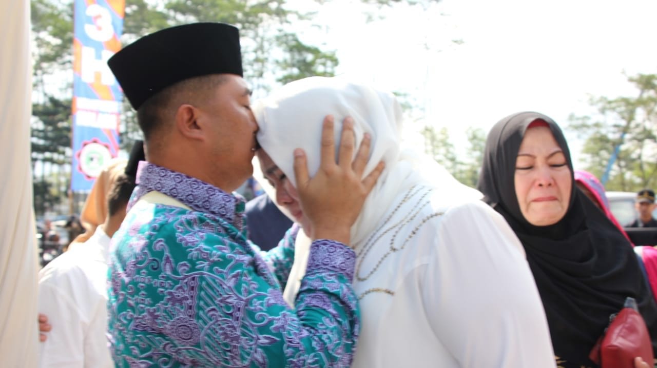 Malang, Memox.co.id – Ada rasa haru terlihat, ketika Dandim 0818 Letkol Inf Ferry Muzawwad S.IP mencium kening sang istri yang tidak lain Ketua Persit KCK Cabang XXXII Kodim 0818 Ny Dewi Ferry Muzawwad. Sebelum berangkat keasrama haji Embarkasi Surabaya, Jum’at (12/07/19).