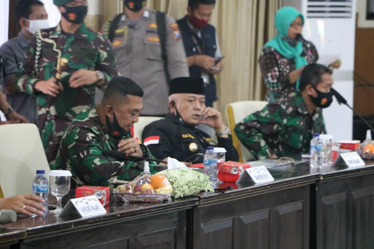 Rapat Evaluasi Operasi Pendisiplinan pelaksanaan protokol Kesehatan di wilayah Malang Raya dalam rangka masa transisi menuju Era baru (New Normal) Wilayah Malang Raya diikuti juga oleh Forpimda Malang Raya.