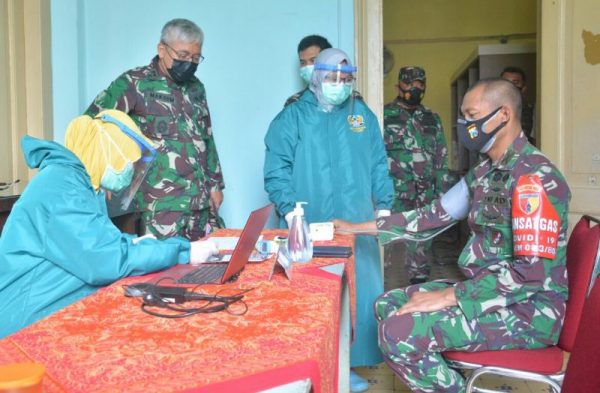 Kota Malang, Memox.co.id – Danrem 083/Bdj Kol Inf Irwan Subekti mengawali penyuntikan tahap pertama vaksin Covid-19 buatan Sinovac yang selanjutnya diikuti seluruh prajurit jajaran Korem 083/Bdj. Bertempat di Rumkitban 05.08.02 Malang, Selasa (02/03/2021).