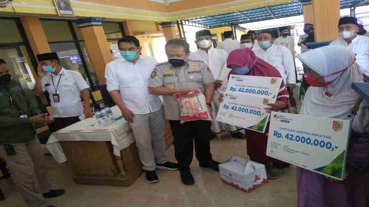 Bupati menerangkan kepada para ahli waris mengatakan, pemberian santunan ini merupakan bentuk kepedulian Pemerintah kepada RT/RW sebagai Garda terdepan Pemerintah. “Pemerintah hadir untuk memberi proteksi kepada RT/RW dengan mengikutsertakan BPJS ketenagakerjaan yang akan mengcover kecelakaan kerja dan jaminan kematian bagi RT/RW dalam melaksanakan tugasnya,” kata Hendy.
