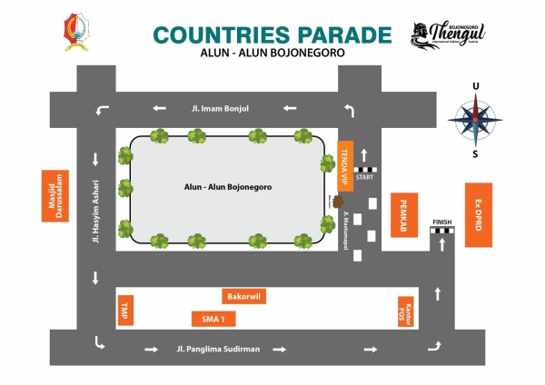 Rangkaian acara B-TIFF, untuk hari pertama yaitu Countries Parade yang berlangsung pagi hari. Untuk rute dimulai dari Jl. Mastumapel – Jl. Imam Bonjol – Jl. Hasyim Asy’ari – Jl. Panglima Sudirman – Jl. Trunojoyo Selatan – dan finish di eks Gedung DPRD Bojonegoro.