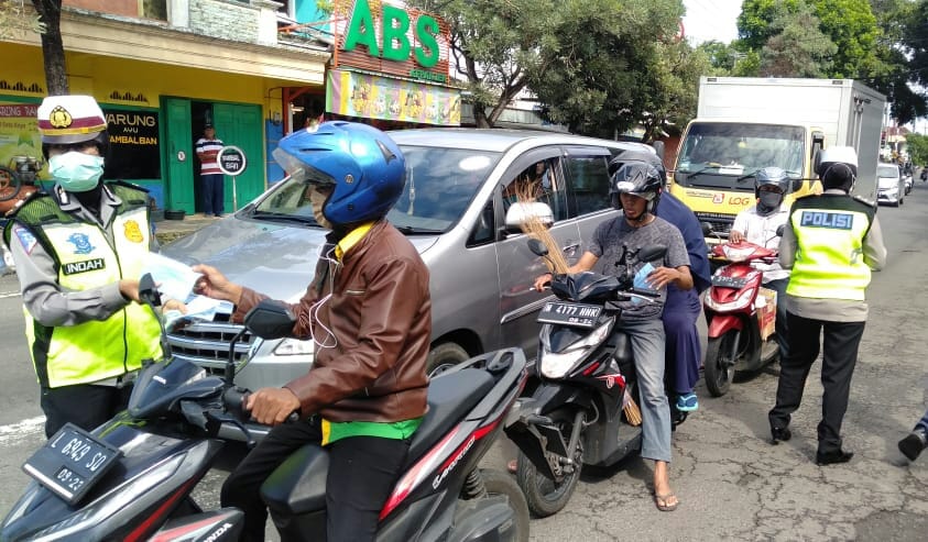 Dikyasa Polres Malang Bagi Masker ke Masyarakat Pengendara