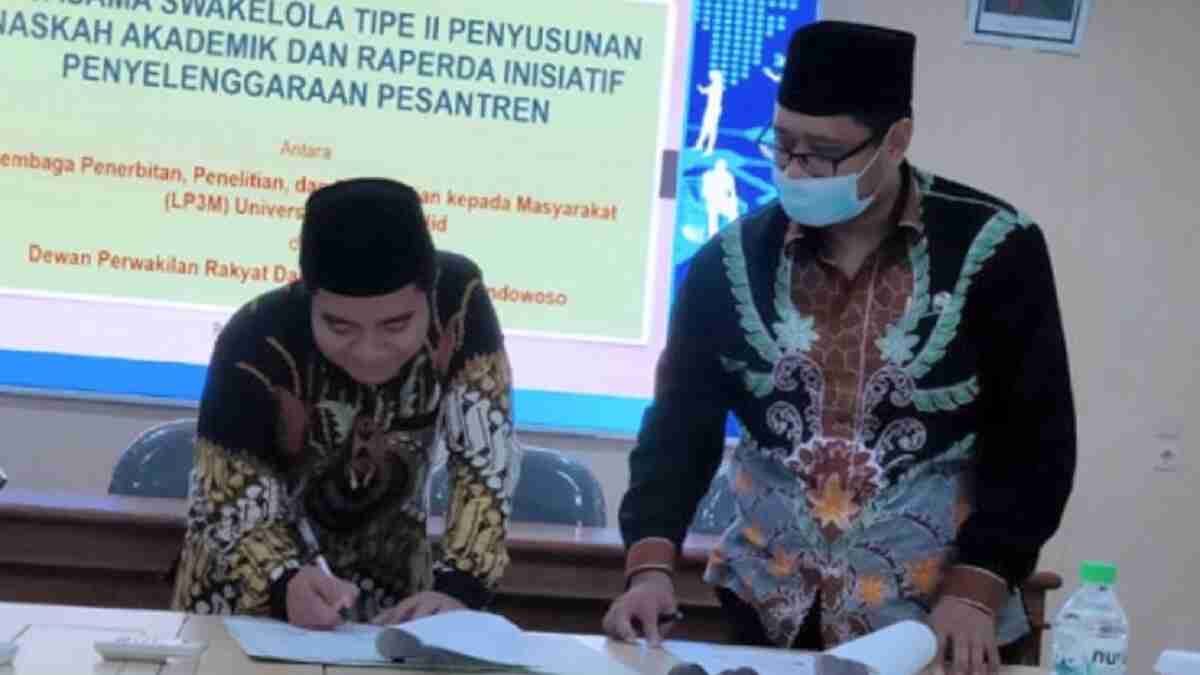 Penandatanganan dilakukan, Kamis (14/10/2021) siang di Wisma Dosen Kampus yang berpredikat sebagai kampus pesantren pertama yang berstandar ISO 21001. Ada 5 Raperda tentang Penyelenggaraan Pesantren.