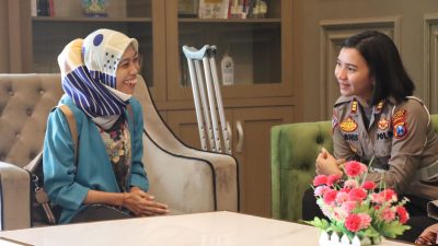 BERBINCANG: Kasat Lantas AKP Agnis saat berbincang dengan Eka penyandang disabilitas.