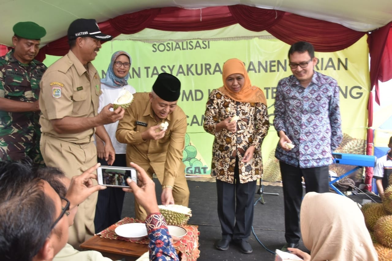 Bahkan, beberapa waktu lalu, Gubernur Jatim, Khofifah Indar Parawangsa juga menyempatkan diri untuk turut membuka kegiatan panen durian yang bertepatan dengan Kegiatan Gerakan Membangub Desa (Gema Desa) di Kecamaatan Ngantang. Yang juga merupakan agenda rutin Pemerintah Kabupaten (Pemkab) Malang.