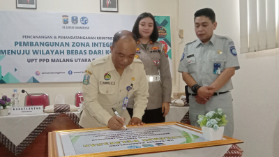 Penandatanganan Pakta Integritas yang mengambil tempat di KB Samsat Karangploso diikuti Kasat Lantas Polres Malang AKP Agnis Juwita Manurung, Kepala UPT Pengelolaan Pendapat Daerah Malang Utara dan Batu Kota Aries Yudhananta, dan Kepala Perwakilan Jasa Raharja (Persero) Malang Eko Mulyono.