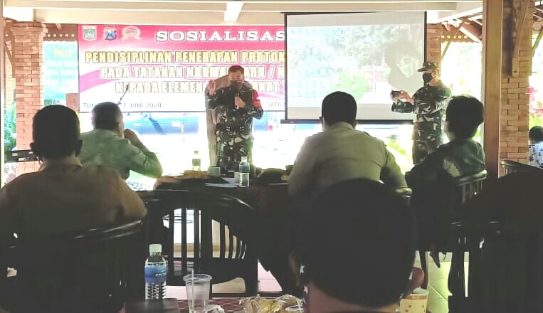 Malang, Memox.co.id – Satgas Gugus Tugas Covid-19, dalam hal iniKoramil 0818/22 bersama Muspika Tumpang menyelenggarakan sosialisasi penerapan protokol kesehatan kepada seluruh elemen masyarakat termasuk dinas instansi, serta ormas se Kecamatan Tumpang, dilaksanakan di Wisata Lembah Tumpang, Senin (15/06/2020).