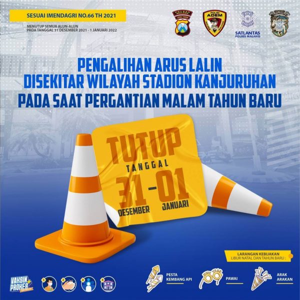 Malang,Memox.co.id– Dihimbau segenap warga masyarakat di wilayah Malang Raya khususnya Kabupaten Malang untuk memperhatikan himbauan adanya pengalihan arus lalu lintas yang ada disekitar stadion Kanjuruhan pada saat pergantian tahun 2022, Selasa (28/12/2021).