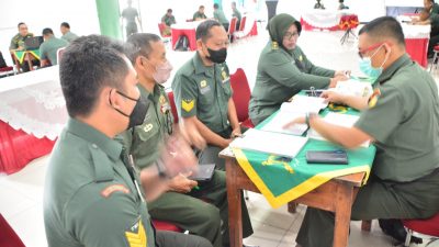 Kedatangan Tim Verifikasi yang diketuai Irutum Itdam V/Brw Kolonel Caj (K) Purwaningsih disambut langsung oleh Kasrem 083/Bdj Letkol Inf Akhmad Juni Toa, S.E., M.I.Pol. didampingi para Kasi Korem/083.