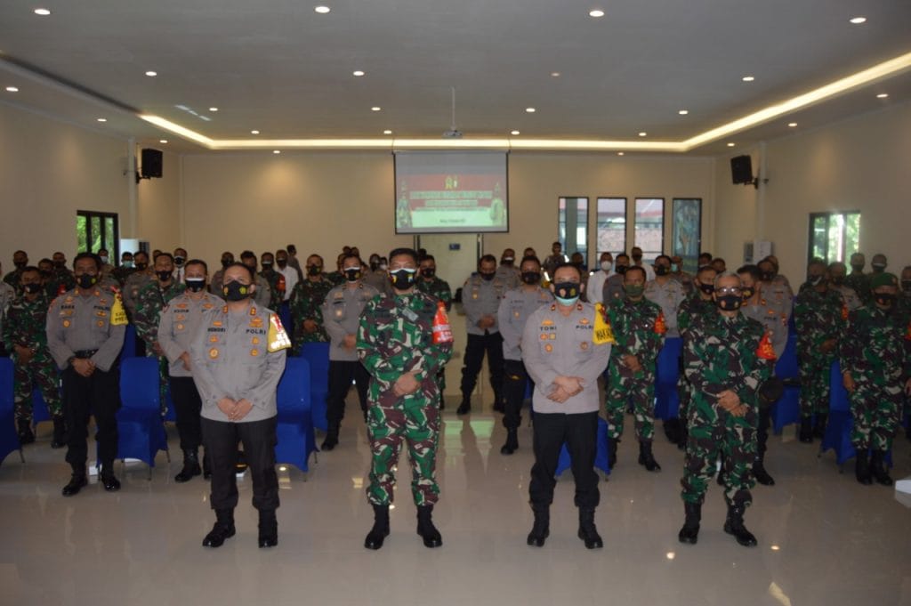 “ Kita TNI dan Polri merupakan garda depan dan harus selalu bersinergi untuk memberikan contoh kepada Masyarakat agar tetap selalu mematuhi protokol kesehatan selama Pandemi Covid-19, seperti hindari kerumunan, Selalu memakai masker dan cuci tangan,” kata Letkol Yusub