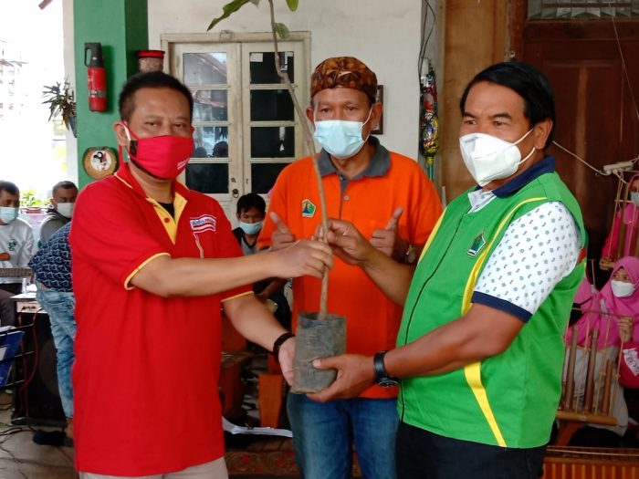Pemberian 100 bibit pohon Mangga secara simbolis diserahkan Corporate Communication Regional Manager PT SAT M. Faruq Asrori kepada pembina Kader Lingkungan Kota Malang Ir. Wasto disaksikan Ir. Bambang Irianto tokoh lingkungan nasional dan Ketua Kader Lingkungan Kota Malang Zainul.