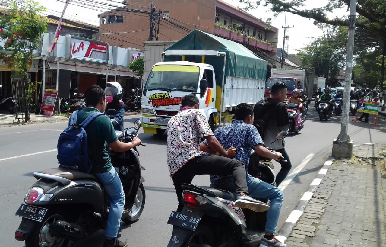 Banyaknya mahasiswa maupun mahasiswi yang tidak mengenakan helm menjadi pemandangan yang biasa terlihat. Karena mereka tahu tidak akan ada anggota Polantas,” ujarnya Senin siang (13/05/19).