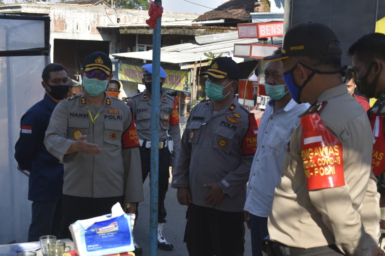 Dalam giat tersebut Kapolres Batu AKBP Harviadhi Agung Pratama SIK, MIK beserta jajaran Polres Batu untuk melihat penerapan protokol kesehatan termasuk meninjau shalter buka tutup portal untuk pedagang sayuran guna untuk sterilisasi Covid-19.