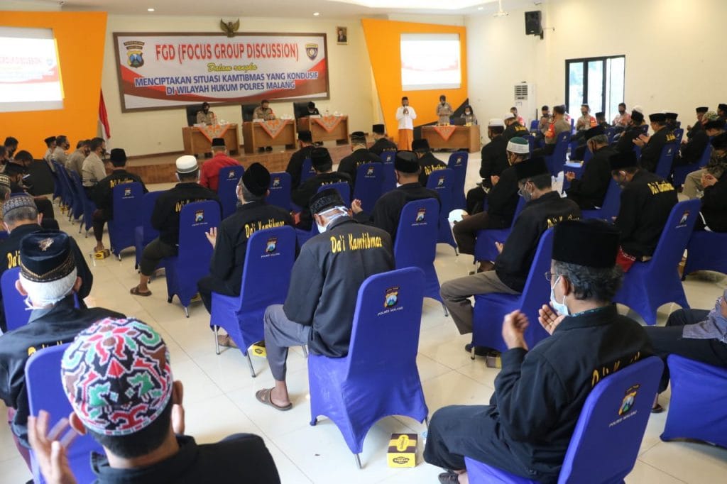 Bertempat di gedung Sanika Satyawada Polres Malang, kegiatan yang dibentuk dalam forum grup discussion (FGD) ini hadiri seluruh Kapolsek jajaran Polres Malang dan Dai Kantibmas Polsek jajaran Polres Malang sebanyak 68 orang.