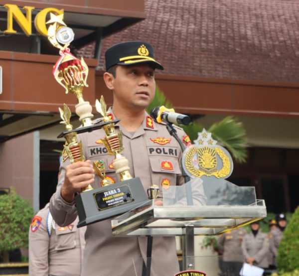 Kapolres Malang AKBP Putu Kholis Aryana dalam amanatnya menyampaikan apresiasi dan ucapan terimakasih kepada seluruh personel Polres Malang.