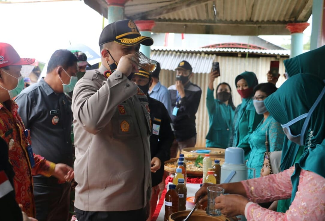Usai peresmian Kapolres Malang AKBP Hendri langsung mencicipi minuman herbal hasil olahan masyarakat Desa Purworejo dari hasil tanaman herbal yang ada di Kampung Tangguh Semeru Desa Purworejo.
