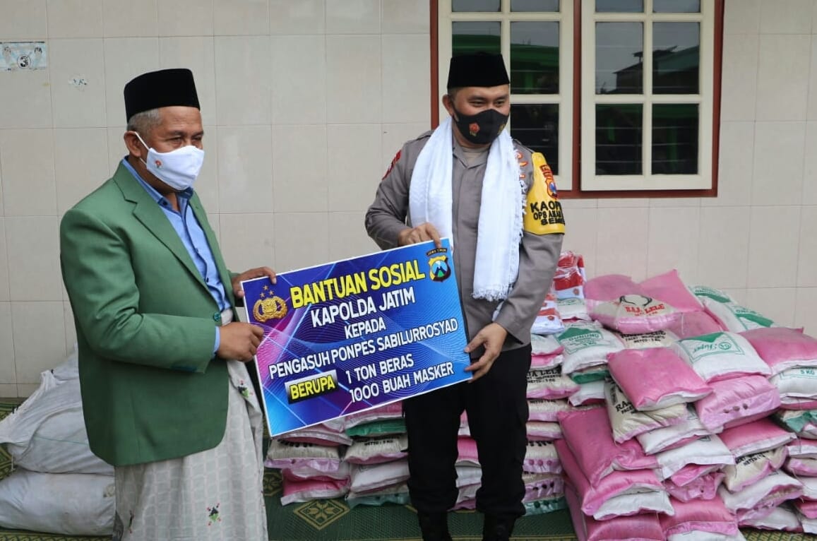 Pada kesempatan itu juga Kapolda Jatim Irjen Pol Fadil Imran memberikan bantuan  sosial secara simbolis berupa 1 ton beras dan 1000 masker yang diterima dari oleh KH. Marzuki Mustamar, M.Ag selaku pengasuh Ponpes Sabillurosyid Gasek.(fik)