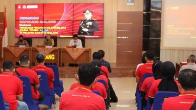 Malang, Memox.co.id – Kapolres Malang AKBP Ferli Hidayat, S.I.K berikan pembekalan sekaligus juga memperkenalkan aplikasi SOEGAB, aplikasi berbasis WhatsApp untuk meminta bantuan pihak kepolisian kepada perwakilan karyawan karyawati Alfamart, bertempat di Gedung Sanika Satyawada Polres Malang, Selasa (05/04/2022).