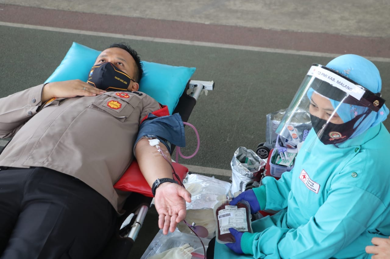Dengan tetap menerapkan protokol kesehatan kegiatan Baksos (Bhakti Sosial) dalam bentuk donor darah yang digelar Polres Malang merupakan kegiatan rutin yang dilaksanakan kepolisian untuk membantu masyarakat yang membutuhkan.