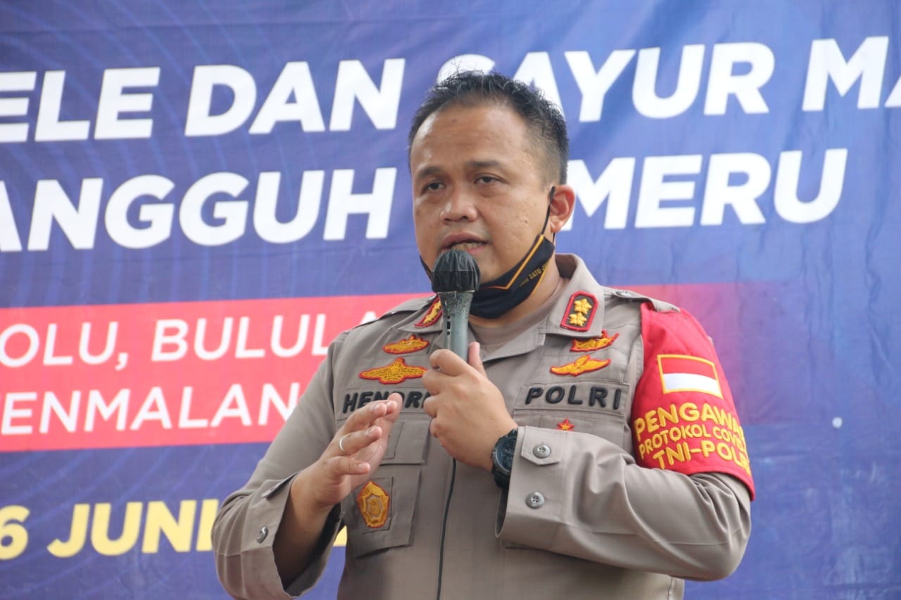 Dalam sambutannya Kapolres Malang AKBP Hendri menyampaikan beberapa poin penting, diantaranya memberikan dukungan penuh keberadaan Kampung Tangguh Semeru Desa Kuwolu yang memiliki kolam budidaya ikan lele dan sayur mayor, termasuk mampu mengisolasi warganya yang positif Covid-19 hingga dinyatakan sembuh.