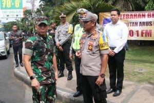 CEK : Kapolres Malang Kota AKBP Asfuri S.I.K.MH bersama Dandim 0833 Kota Malang Letkol Inf Tommy Anderson saat melaksanakan pengecekan Pos Pam dan Posyan