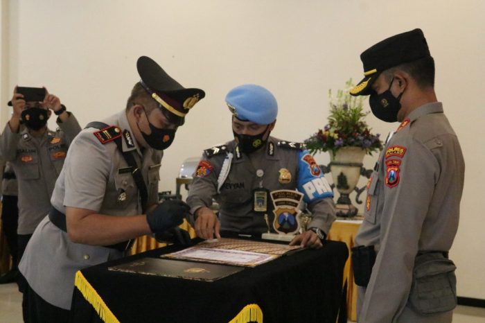 Malang, Memox.co.id – Kapolres Malang AKBP Bagoes Wibisono pimpin upacara Serah Terima Jabatan (Sertijab), beberapa Pejabat Utama (PJU) dan Kapolsek jajaran di gedung Sanika Satyawada, Polres Malang. Senin (29/11/2021).