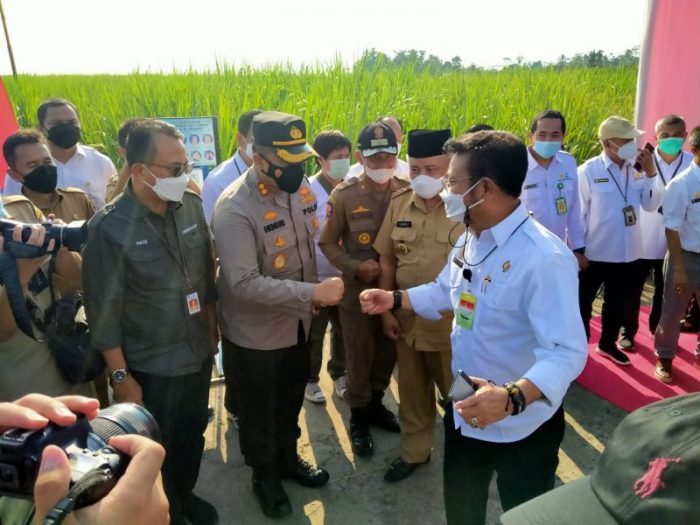 Malang, Memox.co.id – Kapolres Malang AKBP Hendri Umar, S.I.K., MH ikut dalam penyambutan Kunker (Kunjungan Kerja) Menteri Pertanian Syahrul Yasin Limpo sekaligus juga menyerahkan bantuan Alsintan (Alat dan Mesin Pertanian) di Kecamatan Pagelaran Kabupaten Malang, Selasa (18/05/2021).